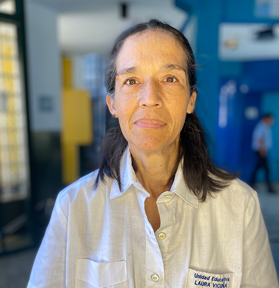 Ella es la profesora Alicia y tiene 8 años en la institución. Es la profesora de Matemáticas y Física de todo bachillerato y considera que la labor de docente la ha ido llevando a manejar a lo largo de los años, todas las expectativas, porque cada vez la educación va evolucionando y la idea es lograr conectar, esas materias que siempre han sido las ¨coco¨ con los muchachos que están en otra filosofía, en otra manera de ver la vida.